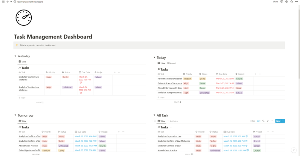 A simple, yet effective task manager just for you. It includes Yesterday, Today, Tomorrow, and All Task in one dashboard.